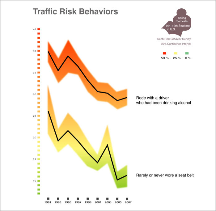 I use traffic signal colors of red, yellow, and green to compare two traffic risk behaviors: